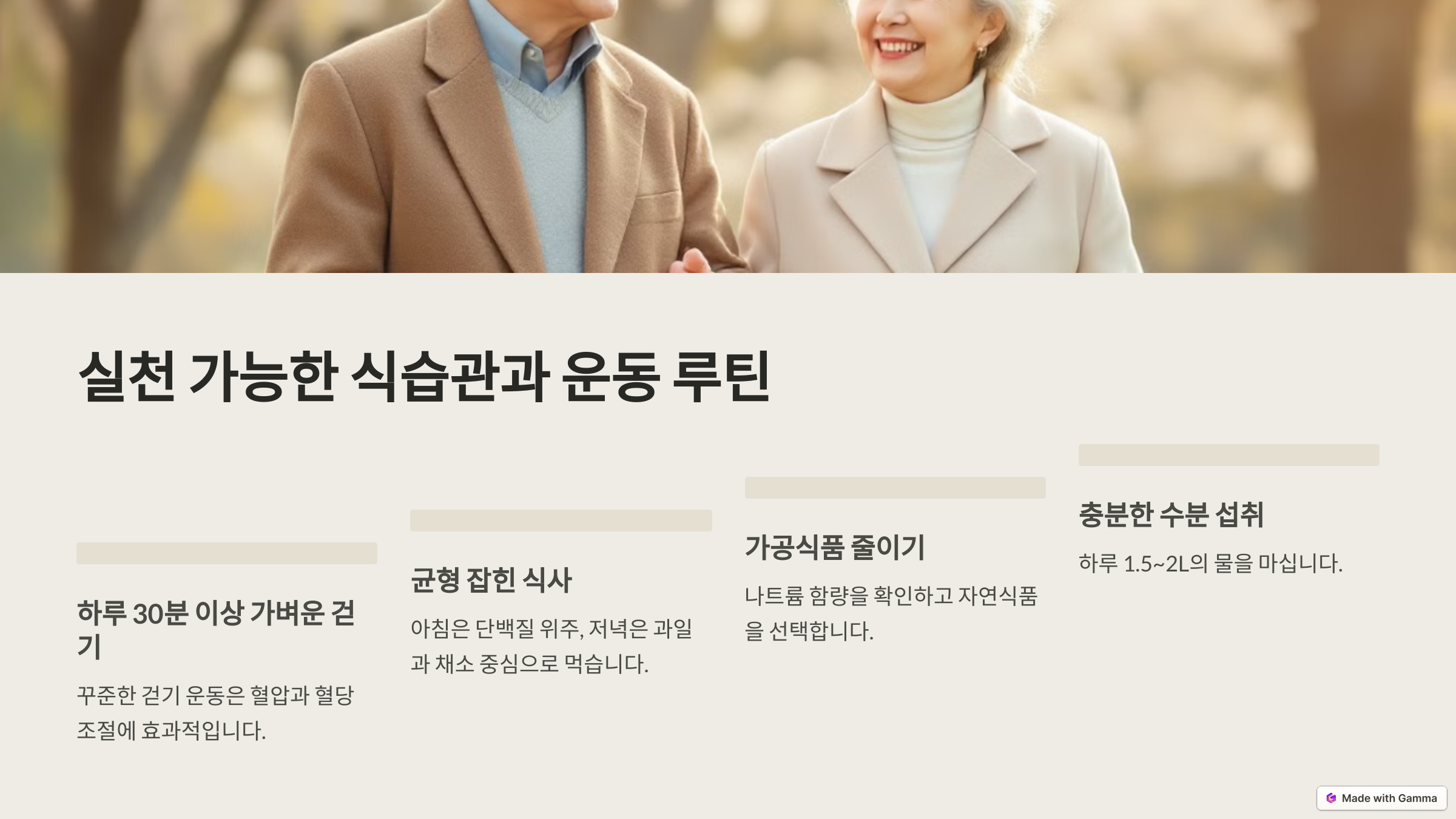 이렇게만 해도 혈압과 혈당이 눈에 띄게 안정됐어요! 무리하게 다이어트할 필요 없이, 천천히 습관을 바꾸는 게 가장 오래갑니다.