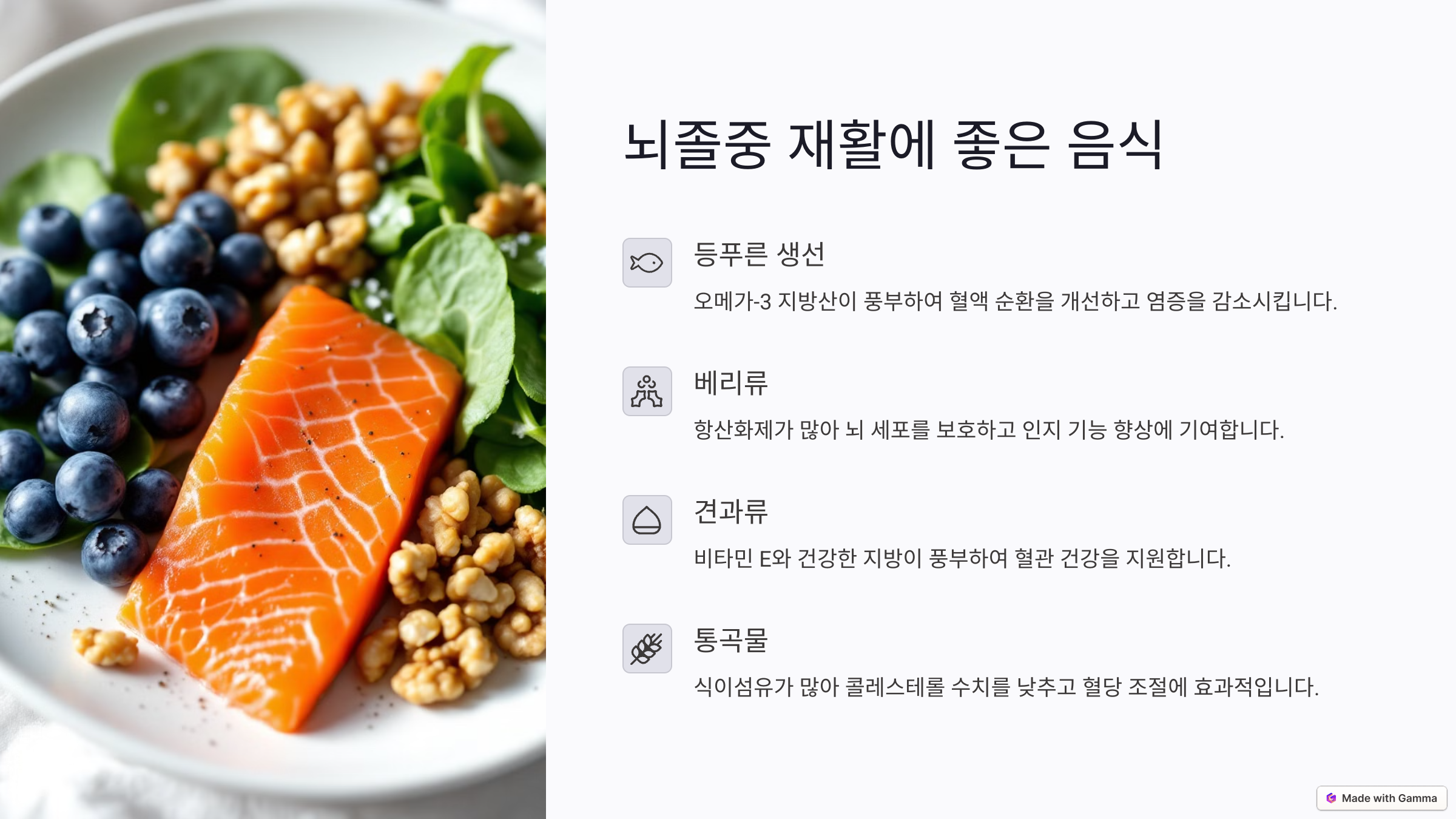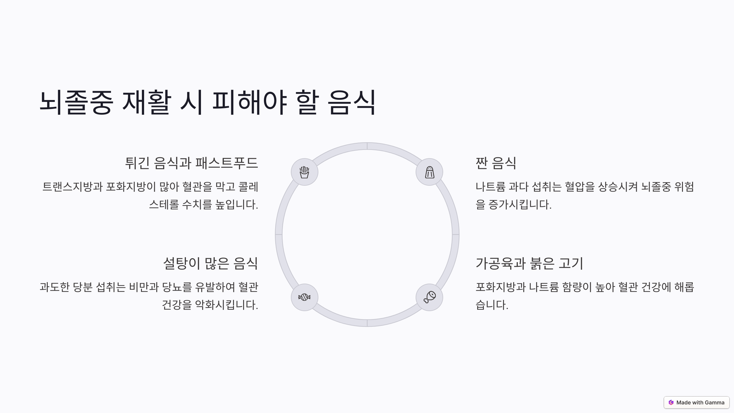 뇌졸중 재활 과정에서 올바른 식단은 회복을 촉진하고 재발을 예방하는 데 중요한 역할을 합니다. 어떤 음식을 섭취하고 피해야 하는지 알아보겠습니다.