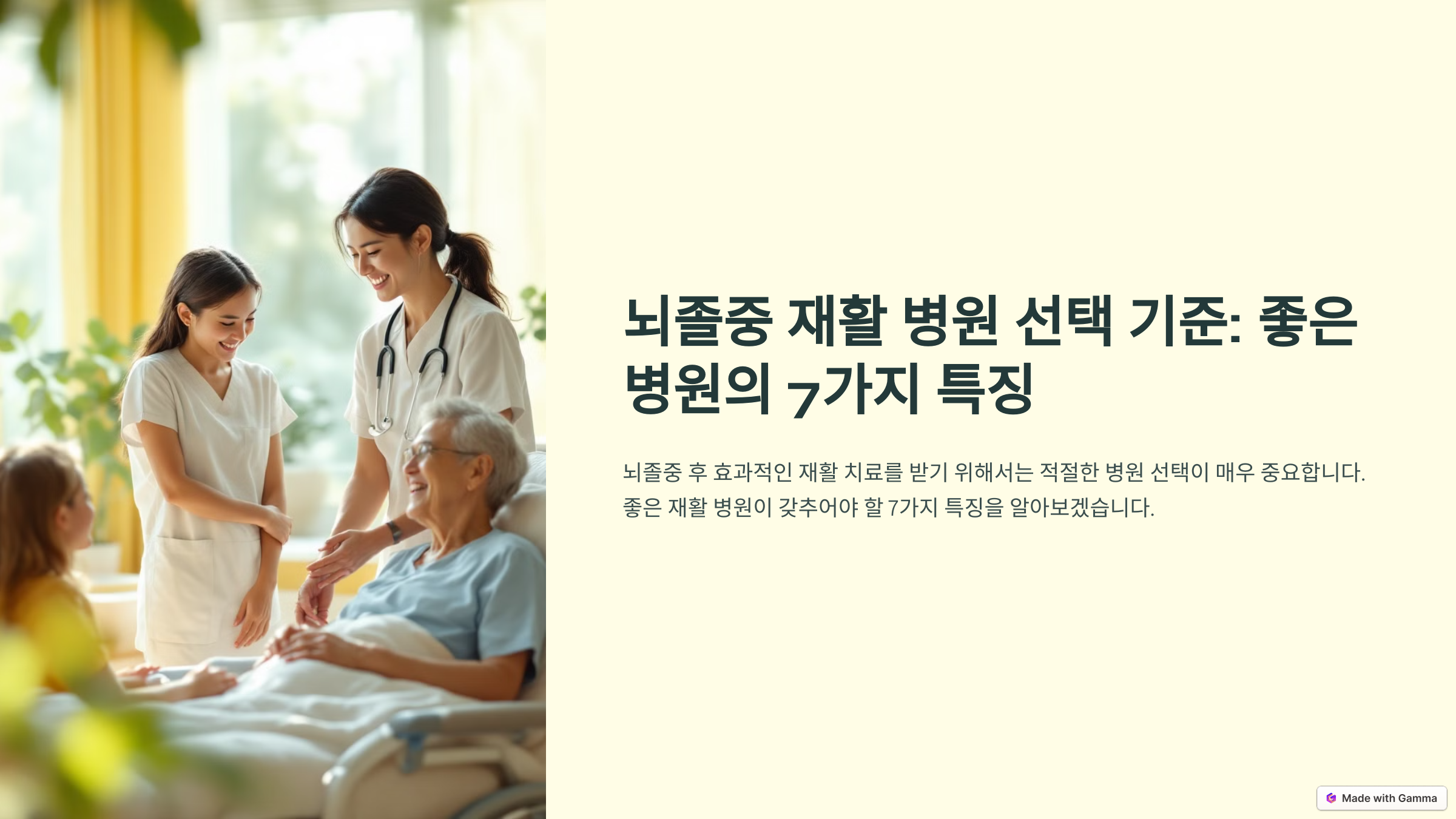 뇌졸중 후 효과적인 재활 치료를 받기 위해서는 적절한 병원 선택이 매우 중요합니다. 아래는 좋은 재활 병원이 갖추어야 할 7가지 특징입니다.