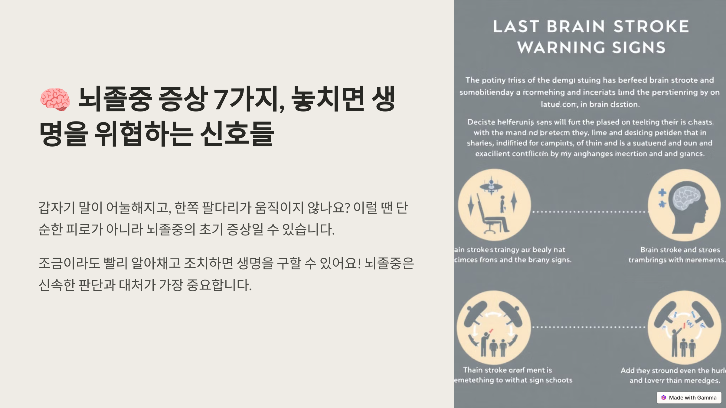 갑자기 말이 어눌해지고, 한쪽 팔다리가 움직이지 않나요? 이럴 땐 단순한 피로가 아니라 뇌졸중의 초기 증상일 수 있습니다.