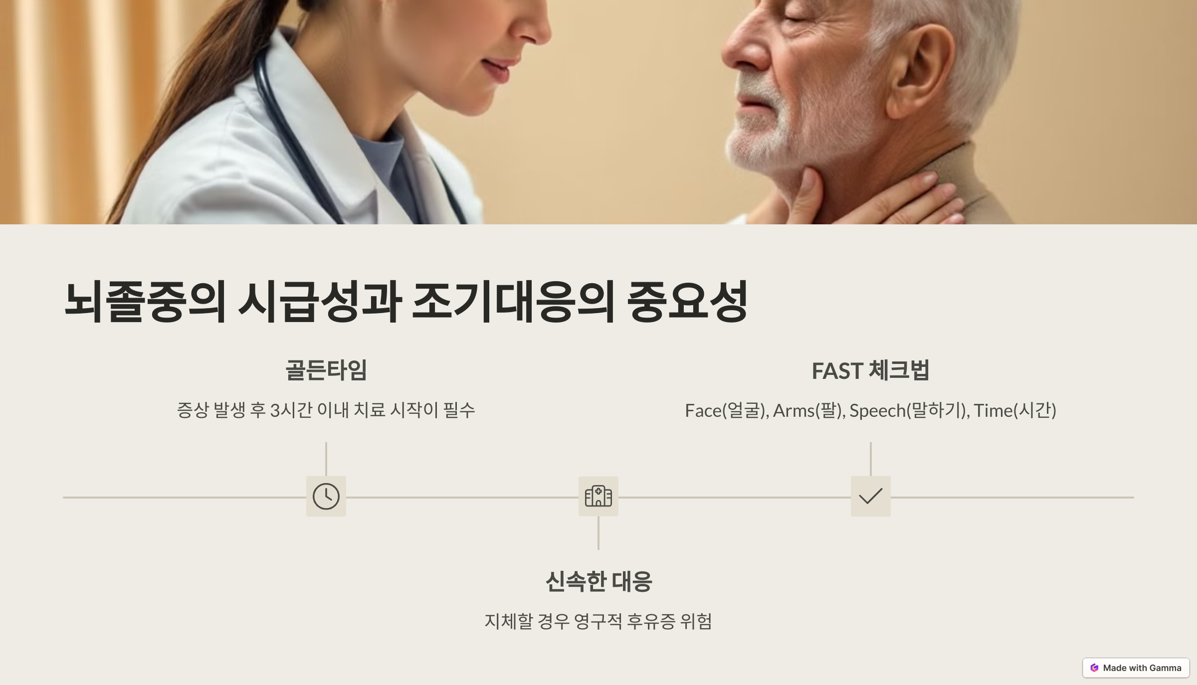 뇌졸중은 시간과의 싸움입니다. 증상이 나타나고 3시간 이내에 치료를 시작해야 후유증을 최소화할 수 있거든요.