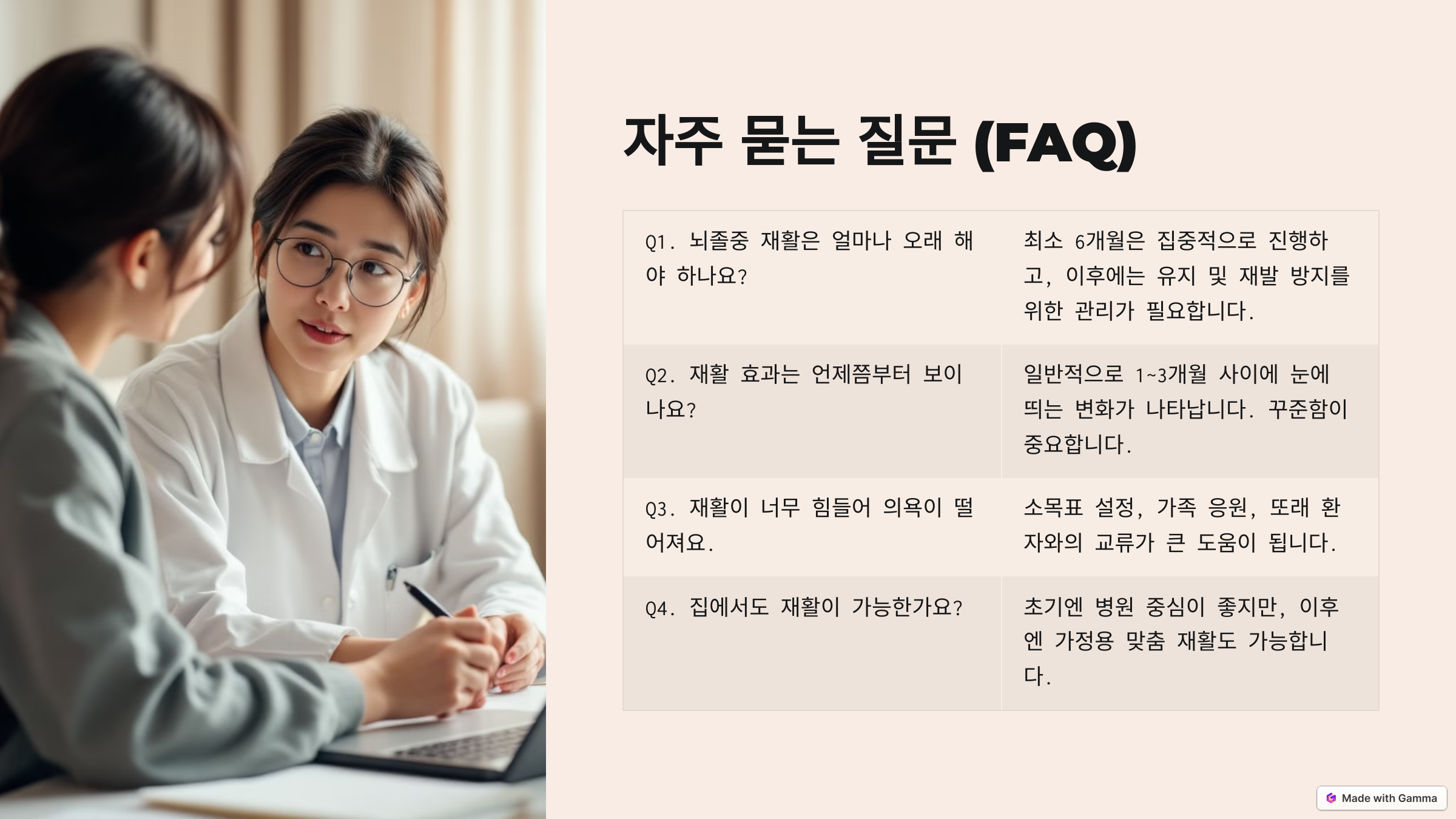 Q1. 뇌졸중 재활은 얼마나 오래 해야 하나요?