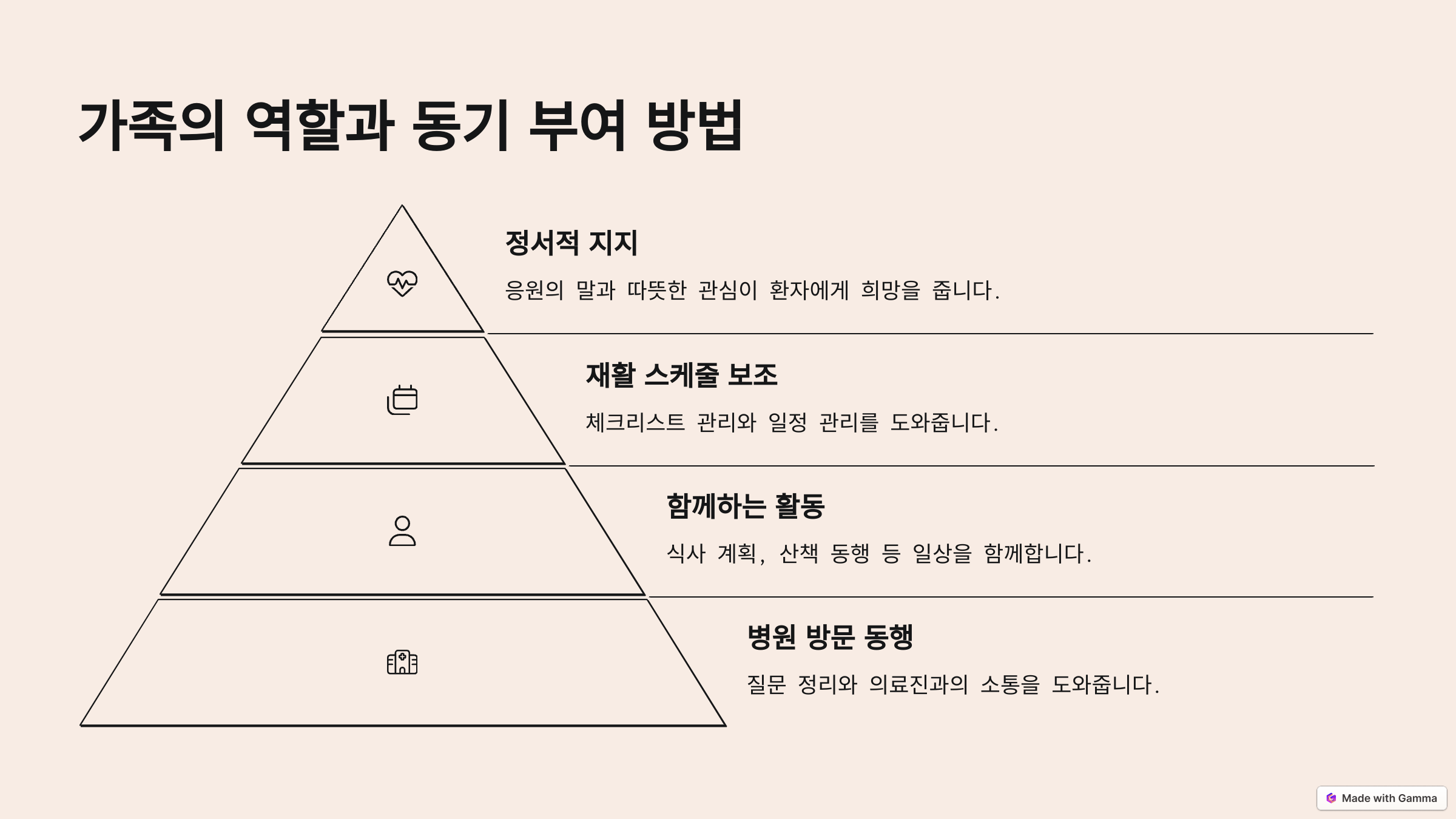 재활의 진짜 열쇠는 **가족의 참여와 응원**이에요.