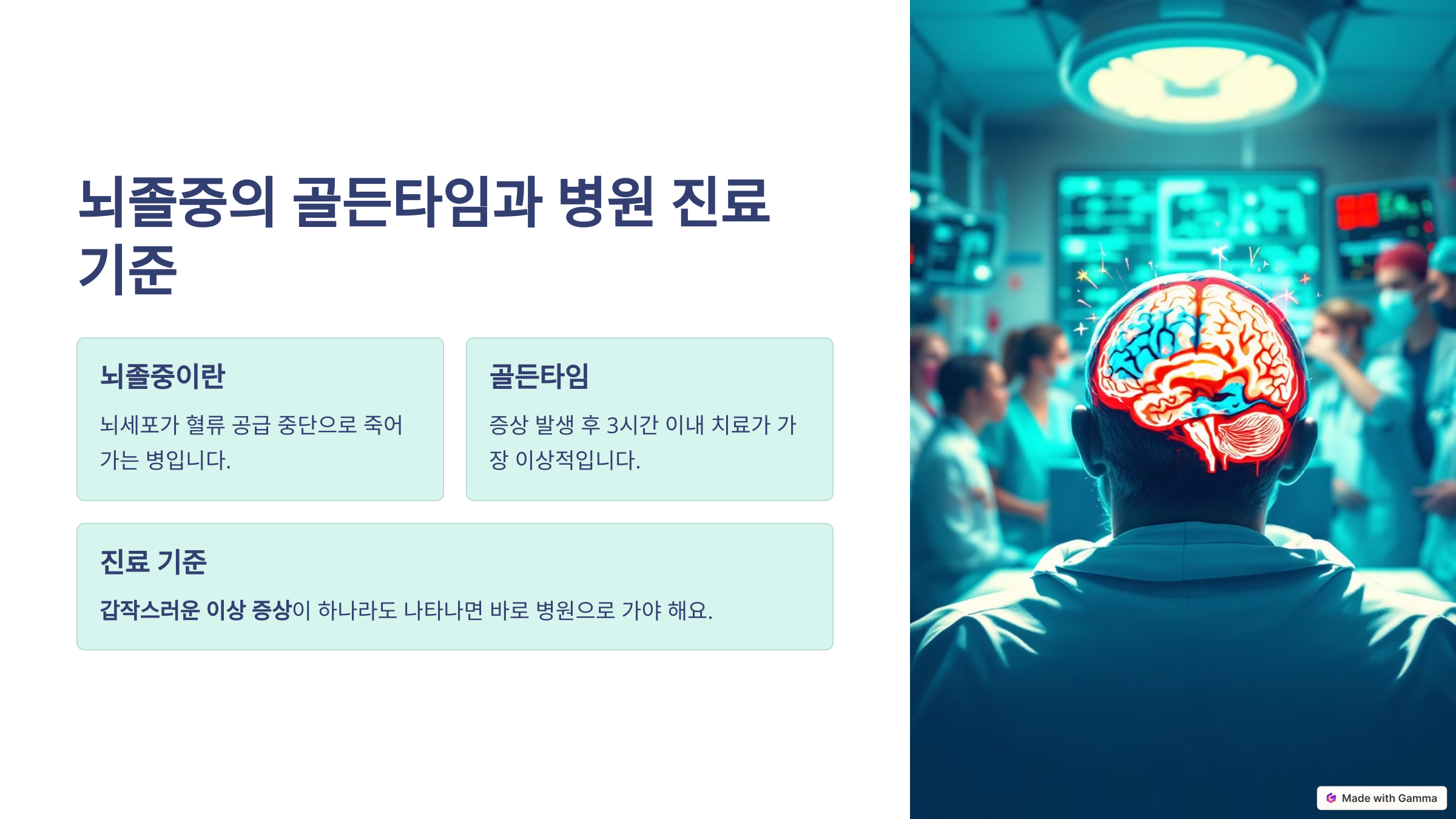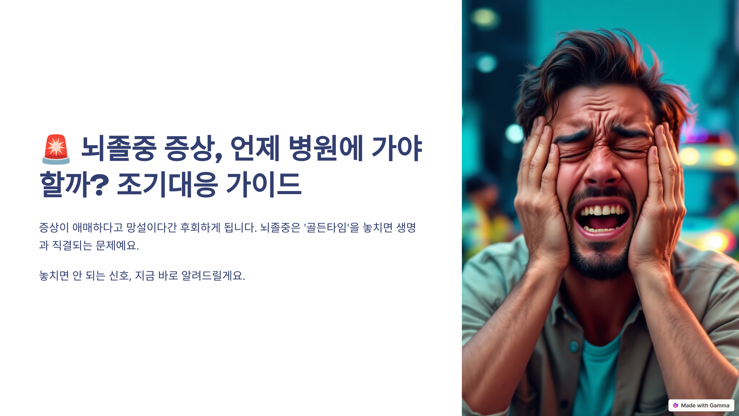 증상이 애매하다고 망설이다간 후회하게 됩니다. 뇌졸중은 ‘골든타임’을 놓치면 생명과 직결되는 문제예요.
